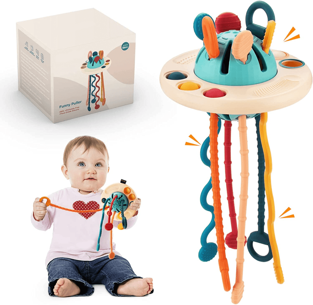Montessori UFO Silikonová tahací hračka